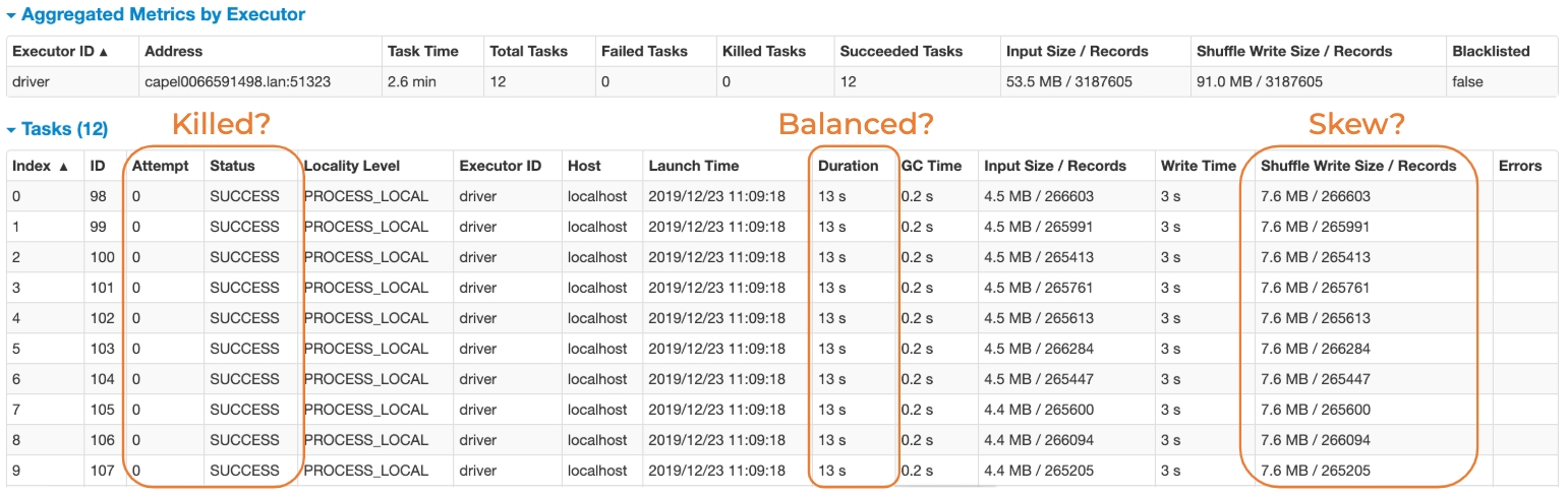 The below picture I made inspired by [25] shows how to use the Spark UI to answer to the following questions: